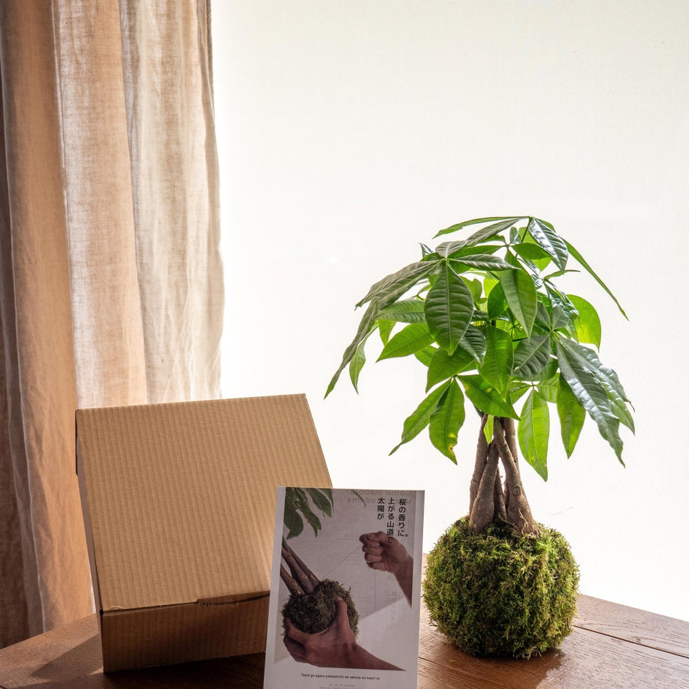 Ce kit DIY kokedama Pachira comprend : de la mousse plate, du terreau spécial kokedama, de la sphaigne, un cordon et un grand Pachira, un guide de conception et d'entretien.