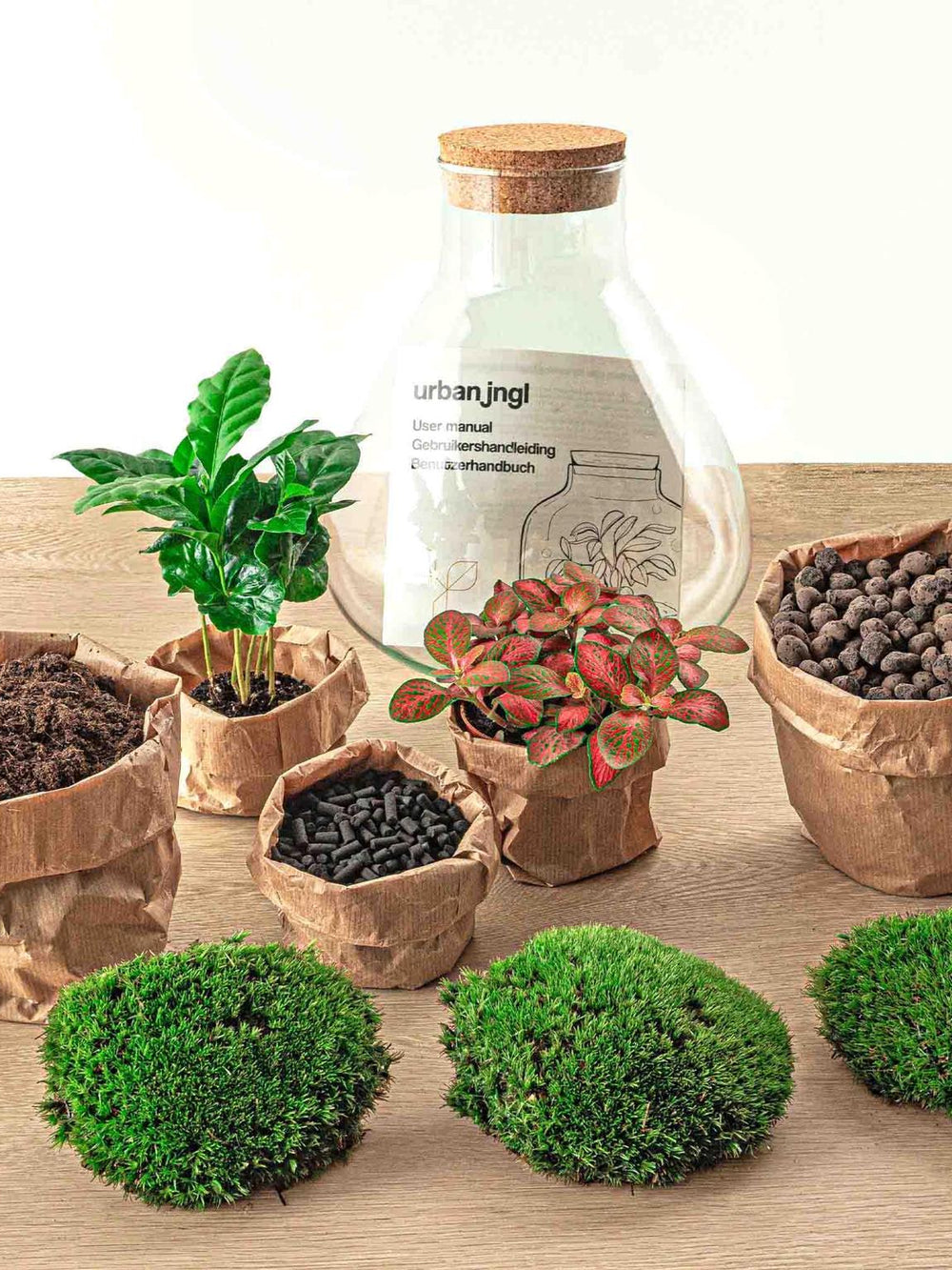 Chaque kit contient tout ce qu’il faut pour concevoir un terrarium quasi-autonome. Même sans la main verte, vous pourrez réaliser un joli jardin miniature dont vous serez fier.