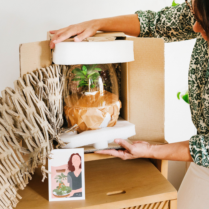 Nous assurons un emballage soigné des terrariums pour préserver la composition créée par nos experts et éviter tout mouvement pendant le transport, garantissant ainsi une qualité optimale.