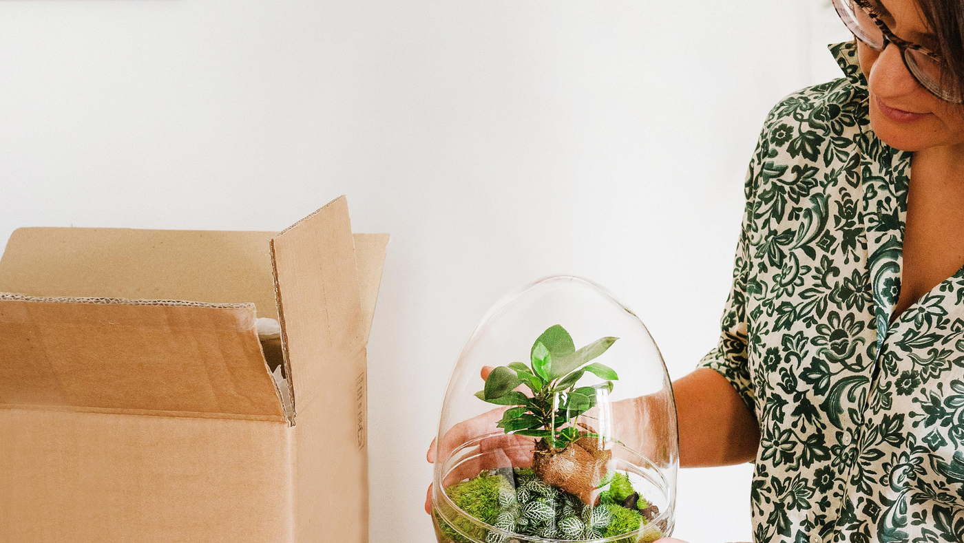 Dès réception de votre colis, vous devez ouvrir le carton le plus rapidement possible et sortir le terrarium délicatement. Utilisez une paire de ciseaux pour ôter la partie scotchée, nettoyez le bocal à l'aide d'un chiffon propre et disposez-le dans un espace lumineux sans soleil direct. Suivez le guide d'entretien du terrarium.