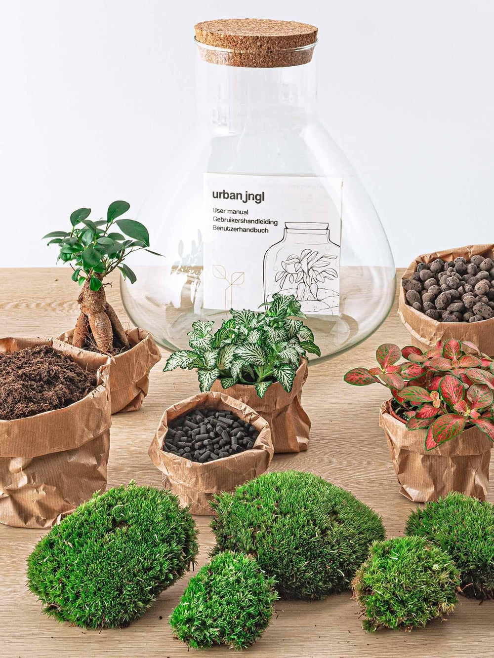 Chaque kit comprend tout le nécessaire pour fabriquer un terrarium durable et quasi-autonome. Parfait même pour ceux qui n’ont pas la main verte : tout est pensé pour être simple, agréable et accessible.
