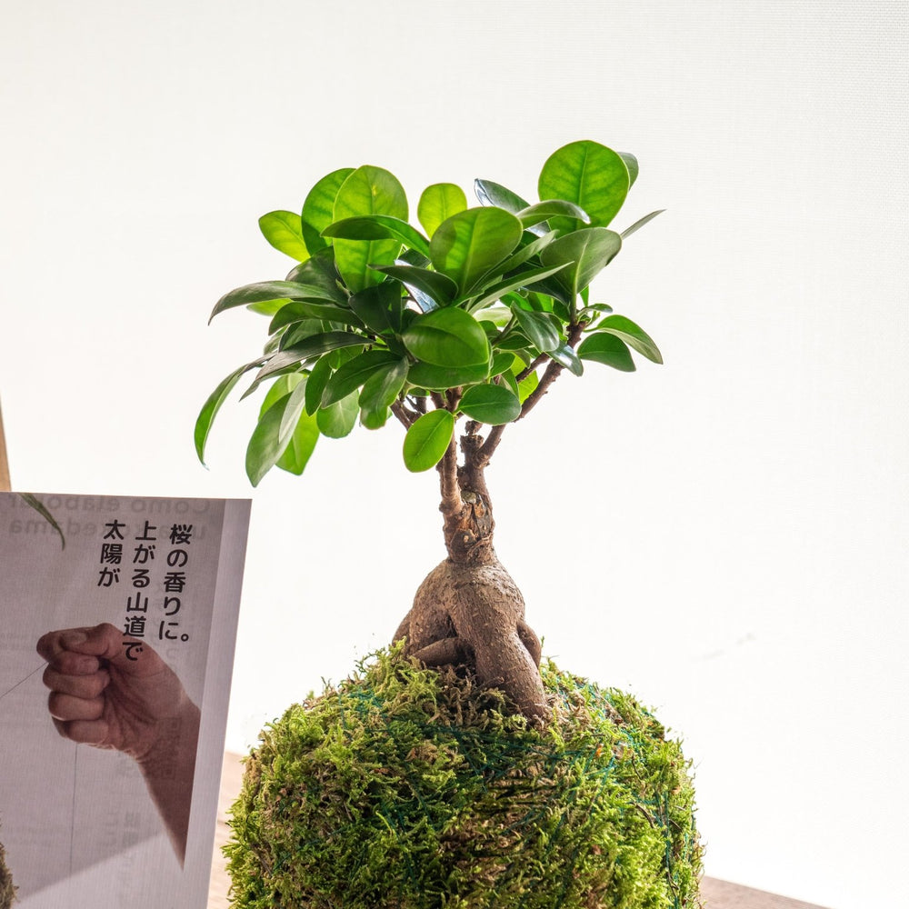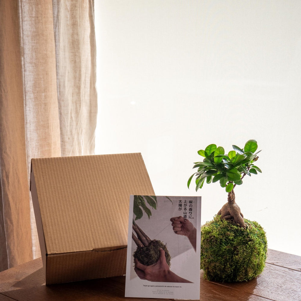 Ce kit DIY kokedama Ficus comprend : de la mousse plate, du terreau spécial kokedama, de la sphaigne, un cordon et un ficus ginseng, un guide de conception et d'entretien.